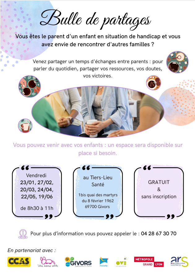 Pour 1/4h, une heure, toute la matinée, venez nous retrouver ! Ce sera l’occasion de découvrir la maison des aidants de Mions, lieu ressource fraîchement ouvert, et l’association Une Souris Verte qui agit pour permettre la pleine participation à la vie en société des enfants en situation handicap.